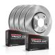 Track Day Plain Front and Rear Brake Kit (TDBK7226) by Power Stop®. The ideal pad and rotor combination for the track day enthusiasts who take their vehicle to the track on the weekend and require better braking performance. Perfectly matched rotors and pads along with upgraded stainless steel hardware, new pin bushings and high temperature brake lubricant. The braking components in Track Day kits are tested on the track, this is not a re-purposed street compound. Power Stop test vehicles are equipped with a sophisticated data logging system & spends hundreds of test hours on a real track. Advanced friction compound was tuned using an AIM EVO4 data-logger monitoring brake pressures, rotor temperatures, and velocity changes via wheel speed, GPS, and 3-axis accelerometers. The 2008 Chevrolet Corvette Z06 served as the ideal vehicle to develop our platform-specific braking system suited for both track days as well as the drive home.