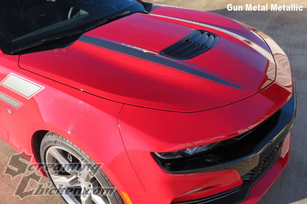 Similar to the factory 2019-22 Camaro Spider Stripes, these stripes go along the raised cowl portion of the hood to accent the body lines. Available with or without a pinstripe. Both sides of the hood are included.
