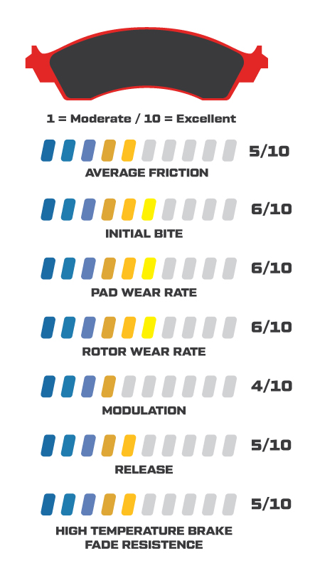 - High performance street compound with improved friction, lower wear and lower dust levels than standard replacement pads