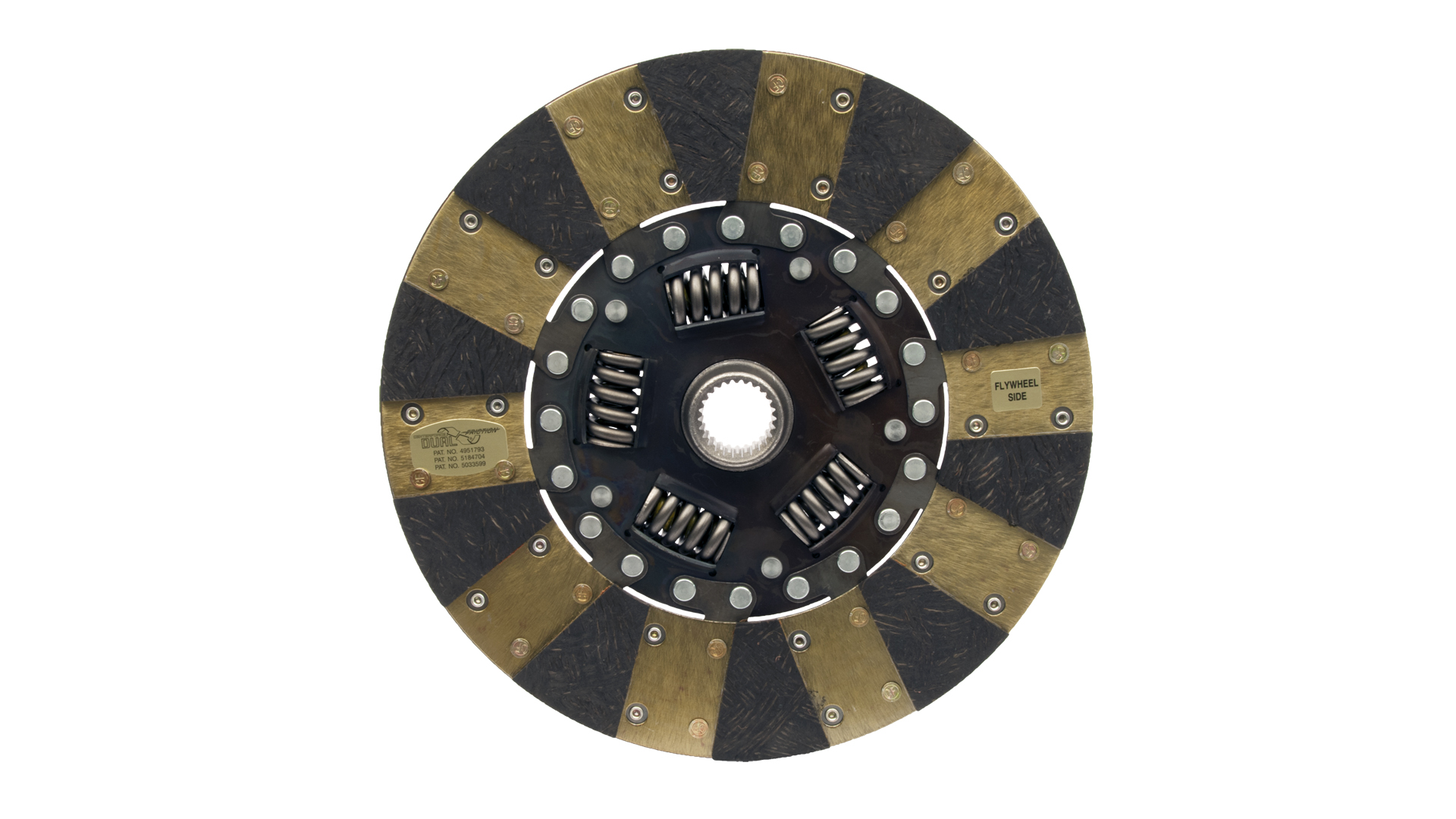 The Centerforce Dual Friction Disc Series uses a single disc with patented dual friction technology by distributing pressure plate clamp force evenly over a 360-degree friction-facing on one side of the clutch disc, while the opposing side uses a segmented friction-facing to concentrate clamping pressure and increase clutch holding-capacity. These discs are made for Centerforce Dual Friction pressure plates.