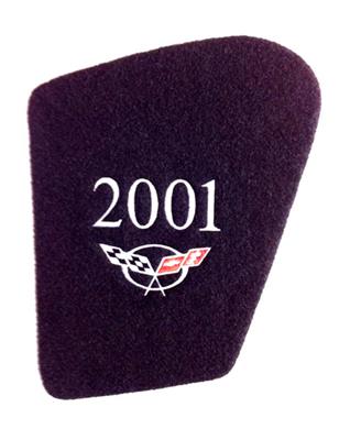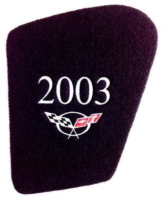 This black-carpeted panel is embroidered in silver with the year of your Corvette from 1997 through 2004. The panel simply attaches with supplied Velcro and is carpeted in black to closely match the GM under the hood insulator.This replaces part numbers 465031, 465044, 465083, 465127, 465142, 465210, 465225, 465236