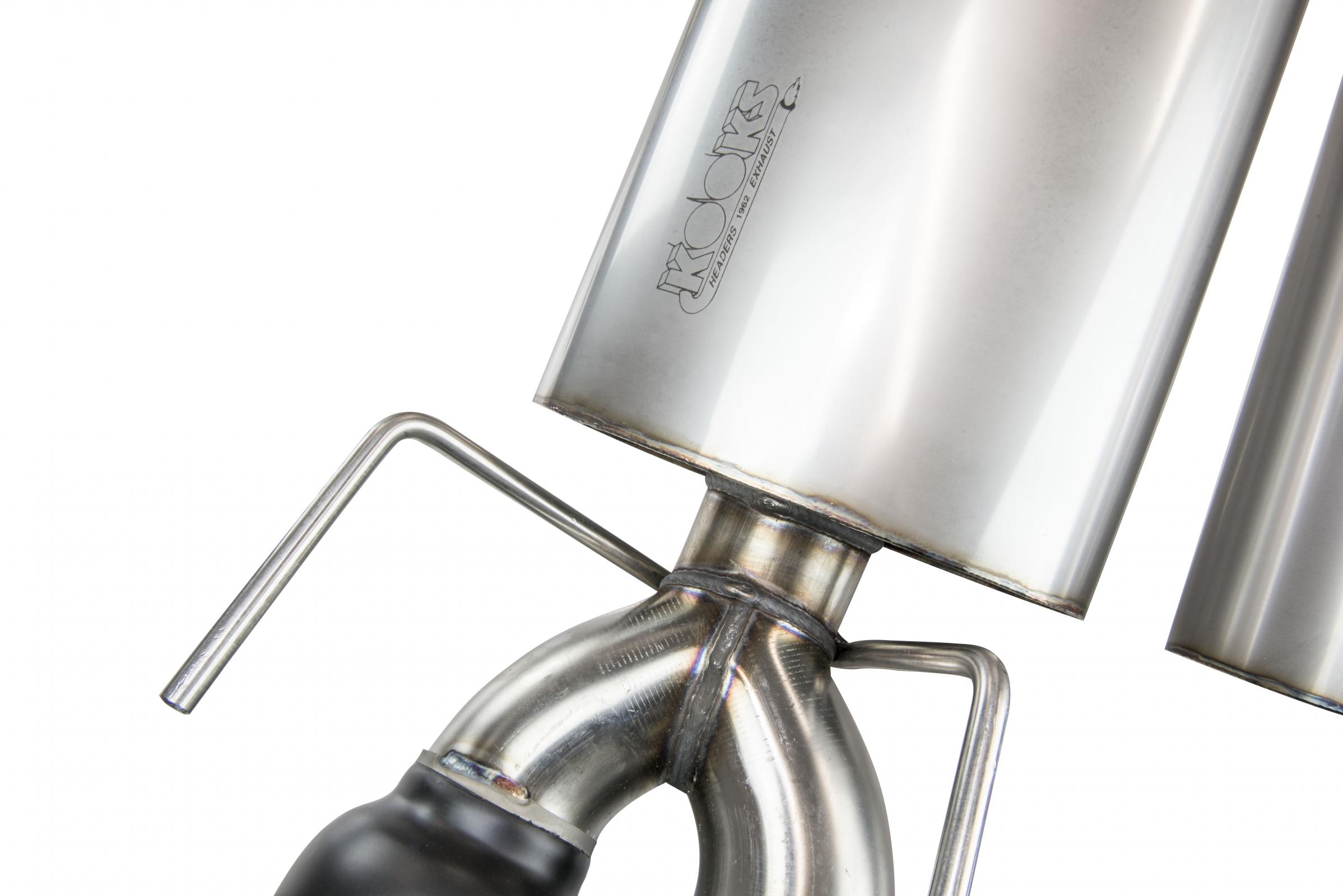 The choice of an aftermarket axle-back exhaust is complicated. There are lots of choices. Kooks Performance Axle-Back Exhausts focuses on delivering the best of what you want to enhance your driving experience. *Aggressive Performance Sound* Our systems are all acoustically styled and engineered to match the make, model, and harmonics specific to your vehicle. Each system is designed to match the personality of a car and its owner Started from grass roots drag racing in 1962, Kooks has become a prominent brand among racing and performance street car enthusiasts. Kooks has a diverse selection of headers and exhaust systems for a wide range of applications. *Improved Horsepower And Torque* Patented non-restrictive Straight-through design reduces back pressure and frees up additional power. *Potential For Better Fuel Economy* Less back pressure and more power means your engine functions more efficiently and that translates into better fuel economy *Premium 304L Stainless Steel Construction* The combination of 304L stainless steel construction and the fact that our systems don't use cheap easily degraded packing materials ensure your product will last. *Limited Lifetime Warranty* The combination of 304L stainless steel construction and the fact that our systems don't use cheap easily degraded packing materials ensure your product will last *Included All Necessary Hardware And Full Color Instructions* Our systems come with top quality Clamps, that are also 304SS, and instructions to make your install as simple as possible *50 State Emissions Legal* Since our systems are all designed to install rearward of the factory catalytic converter there are no emissions hassles. Just bolt it on and go. *Handcrafted In The USA* |