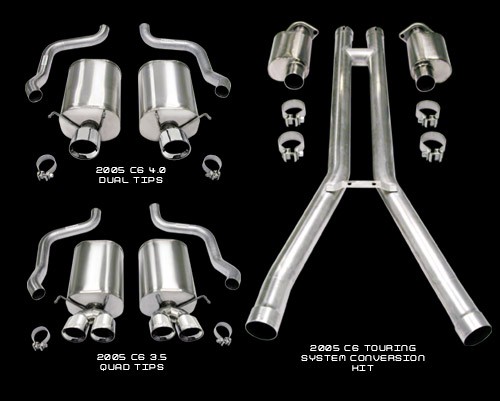 Made from 100% T-304 Stainless Steel, the new touring exhaust system from Corsa Performance Exhausts will dramatically inprove sound, performance and resonance. Flow Bench tested 64% gain in exhaust flow vs. stock muffler. Bolt-on installation, no cutting or drilling required. Includes all hardare and detailed, full-color instructions. 50-State emissions legal. Limited lifetime warranty for as long as you own your Corvette. This Exhaust System Will Not Fit The 2006 Paddle Shift Automatic