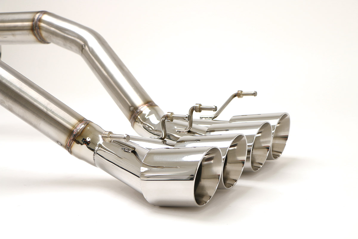 Chevy C6 Corvette Bullet Axle Back Exhaust System - Inc Grand Sport (Round Tips) #FCOR-0515. 4" Quad ROUND Double-Wall Tips. Mandrel bent from the highest-grade T-304 stainless steel. Designed, tested, and manufactured to the finest hand-made integrity found in any exhaust system. Limited Lifetime Warranty.