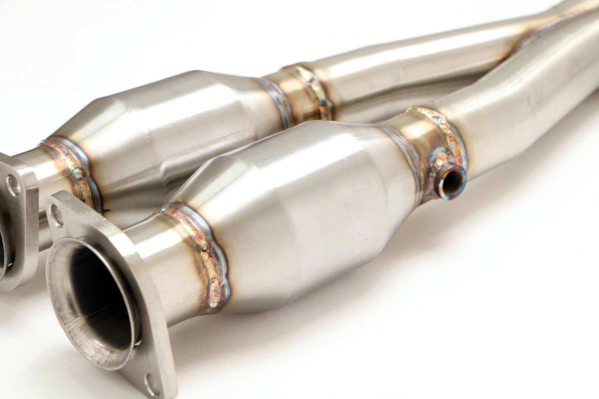 X-Pipe w/High-Flow Cats 2 1/2 in. (6-Spd. and Auto). Mandrel bent from the highest-grade T-304 stainless steel. Designed, tested, and manufactured to the finest hand-made integrity found in any exhaust system.