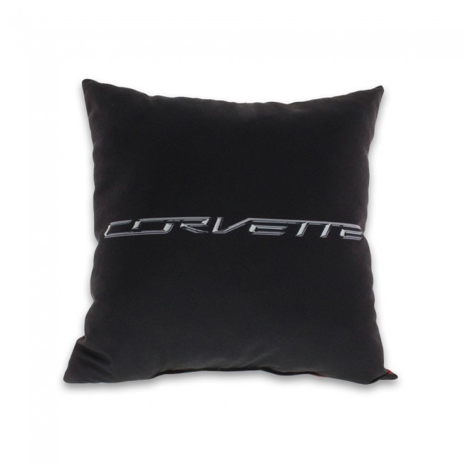 Decorate your room with this Corvette crossed flags decorative pillow. Corvette signature printed on black side and the C7 crossed flags printed on the red side. This pillow is 100% USA made. Made from 100% polyester fabric with 100% polyester fill for a nice and soft pillow. Measures 16" x 16” and is a perfect fit for any Corvette room. Official Licensed GM Product.