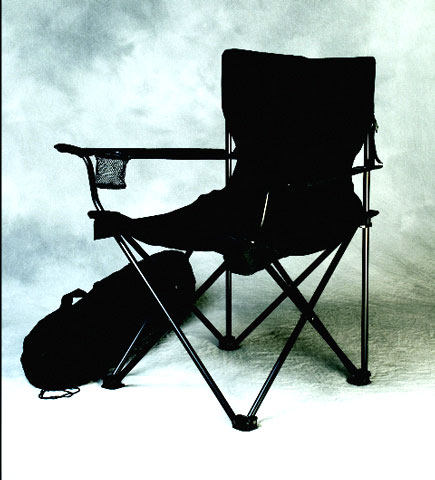 Classic folding chair is made with two layers of strong 600 denier polyester. High quality steeltubing, oversized rivets, seat belt webbing reinforcements throughout. Armrests with mesh drink holder. Logo screened on back of chair. Complete with matching stuff sack.Color: Black.Size: 20.5” W x 31” H x 21” D. Imported.
