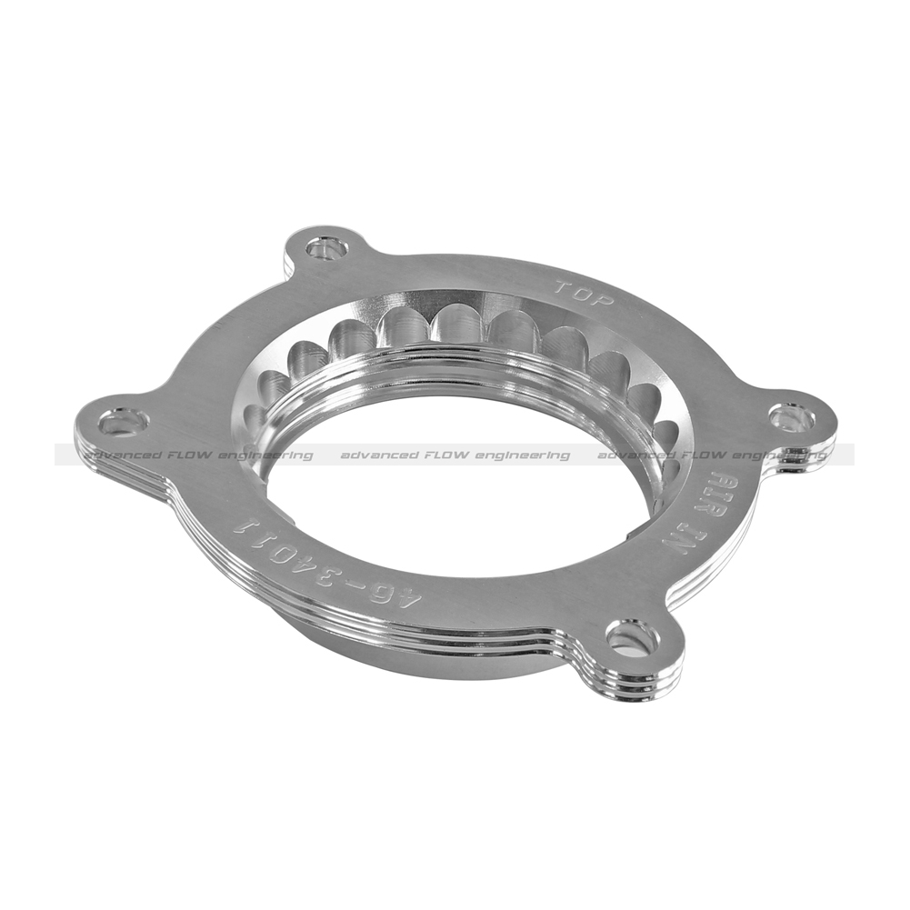 Serrated/Helix Design: The Serrated/Helix design creates air turbulence in the intake manifold. This turbulence increases the air pressure in the combustion chamber resulting in increased horsepower, torque and improved throttle response. The Serrated/Helix combination design also reduces intake whistle that occurs with other helix only designs. 6061-T6 Billet Aluminum Construction: All Silver Bullet Throttle Body Spacers are precision machined from 6061-T6 billet aluminum for lightweight, high strength and perfect fit and finish. Installation Is A Snap: This Silver Bullet throttle body spacer uses all factory mounting locations providing stability and a hassle-free installation.