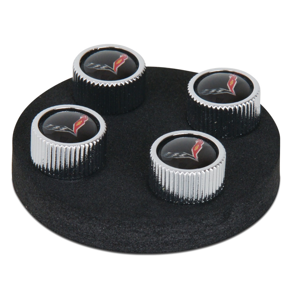 Make a dramatic modification to the appearance of your Corvette with these valve stem caps with crossed-flags logo.