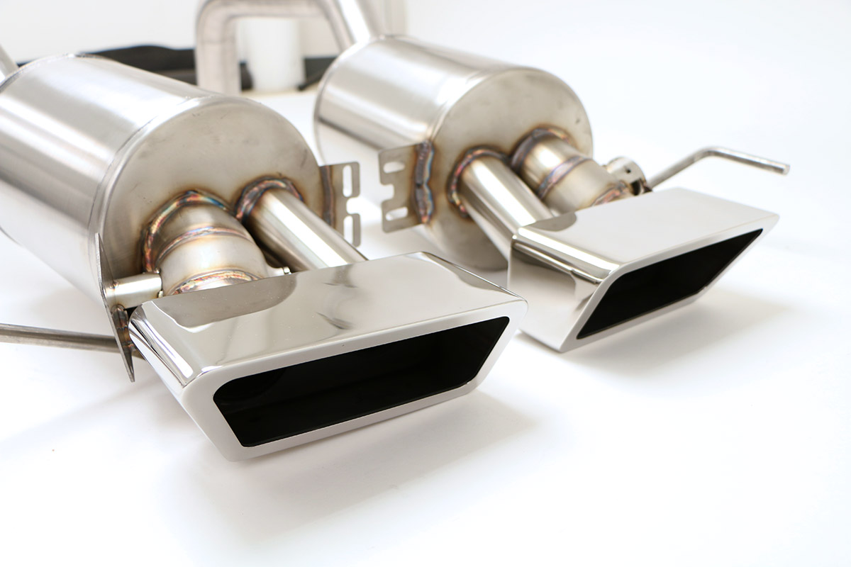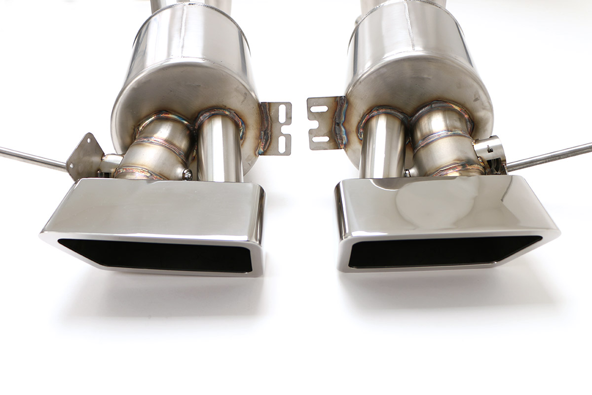 Chevy C7 Corvette Z06 Fusion Gen. 3 Axle Back Exhaust System (Speedway Tips) #FCOR-0677 *Also fits Grand Sport manual transmissions Billy Boat Exhaust has combined the best of the Bullet exhaust with the best technology from the factory to give you the C7 Fusion Exhaust NO-DRONE System for your Corvette. Utilizing the same exhaust control valve as the factory system, you get a “Dr. Jekyll” cruising sound, and release the “Mr. Hyde” Bullet Exhaust sound when you want! How loud is it? Through our development and customer feedback, we have shortened the muffler, making the “loud” side of the muffler “louder”, which results in a tone similar to the famous Bullet system. In the closed position, the tone would be slightly louder than the standard Route 66 system. What controls the valves? The butterfly is controlled by a vacuum valve for non-NPP C7’s, as well as the C4, C5 and C6 Fusion exhausts–which we built and developed completely in house. On the C7 with the NPP option, this valve is controlled by the ECU. The valve opens based on RPM and throttle position. The problem is the factory exhaust is very quiet, even with the valve open. Our expertise here at BBE is getting the “tone” right for your Corvette, and we think we nailed this one. Even in the closed position, the tone is deeper, louder, and more aggressive. Open the valves, the overall volume and tone increases to the point heads will turn when you drive up. *Add our FCOR-0468 conversion kit for Corvette models without factory NPP controls. The kits comes complete with all the wiring, remote switch, vacuum line, vacuum accumulator, and vacuum switch needed for installation. Can only be ordered with Fusion Exhaust Systems. Speedway Tips. Mandrel bent from the highest-grade T-304 stainless steel. Designed, tested, and manufactured to the finest hand-made integrity found in any exhaust system. Limited Lifetime Warranty |