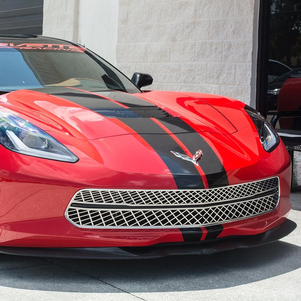 C7 Corvette Stingray - 3Pc Polished Front Grille Expanded Diamond Pattern w/Brushed Trim More than a grille, it's a statement piece that draws all the attention. Our 3 piece polished stainless steel with brushed trim Expanded Diamond Pattern Front Grille kit includes everything needed for installation. It installs directly over the existing factory grille. Coordinates with our new Z06 Hood Vent Expanded Diamond Pattern Insert.