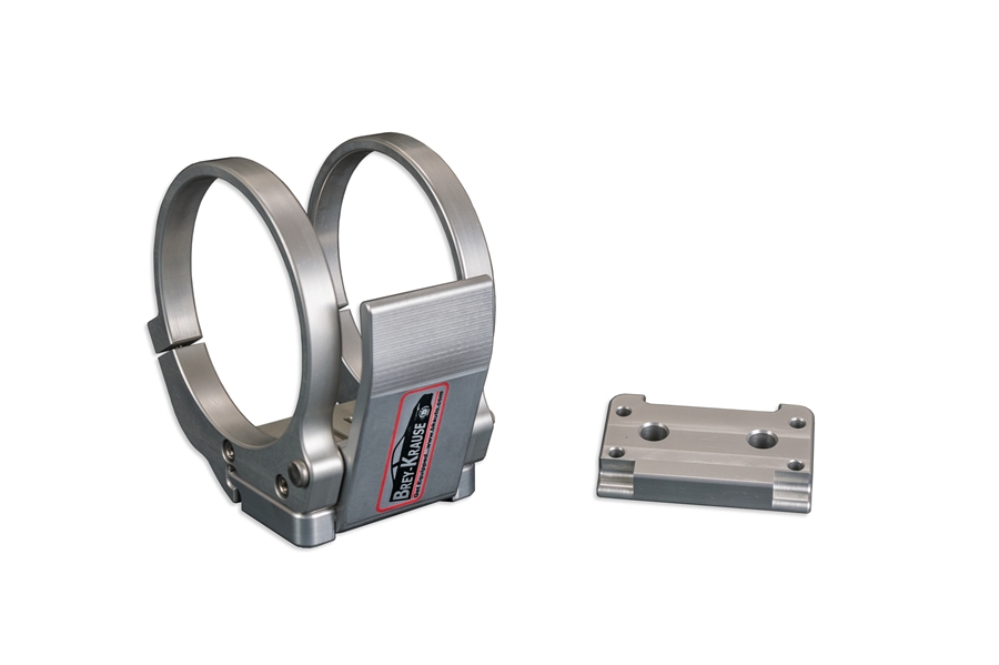 The Brey-Krause "Quick Release" Fire Extinguisher Mount is a precision, CNC machined, work of art - in addition to being a highly functional piece of equipment. It is exquisitely CNC machined from T6 6061 billet aluminum and clear anodized for durability. The part design allows the fire extinguisher to be released from the bracket with one hand when time is of the essence. The bracket attaches to all existing fire extinguisher mounts and includes stainless steel hardware.