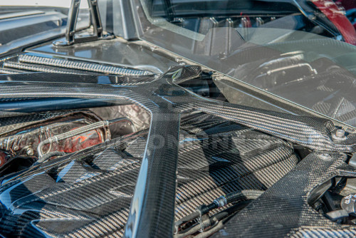 The Chevrolet Corvette C8 Carbon Fiber X-Brace is a premium and high-performance component designed exclusively for Chevrolet Corvette Base/Z51 & Z06 models (please note that it is not compatible with the C8 Z06 equipped with an engine cover). This X-brace is meticulously constructed from carbon fiber, a material known for its exceptional strength and lightweight properties, and it features a striking carbon fiber surface finish.