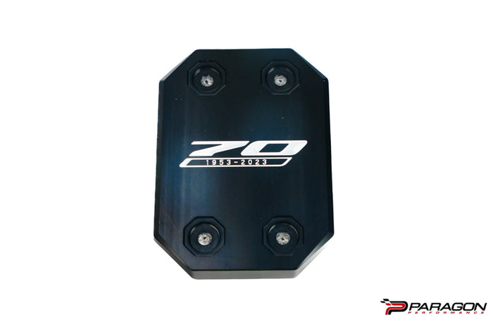 The C8RallyDriver C8 Corvette 70th Anniversary Access Covers for the C8 Corvette Coupes are machined from 6061 billet aluminum. This GM Officially Licensed Product is designed to compliment the Corvette C8 styling. The Access Covers are professionally designed and engineered. Add that extra style to your Corvette engine bay for car shows and other events. These covers compliment and perfectly match our other custom parts like the C8 rally driver rear hatch support brackets & are direct bolt on replacements for the factory stamped steel access covers.