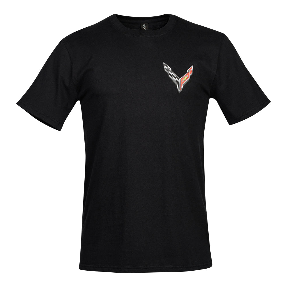 Striking C8 Corvette with flag logo softly screen printed on back with C8 Corvette flag logo printed on front left chest. The C8 logo represents all 2020 and newer Corvettes. Show your support of the American sports car with the exclusive Legacy collection from West Coast Corvette!