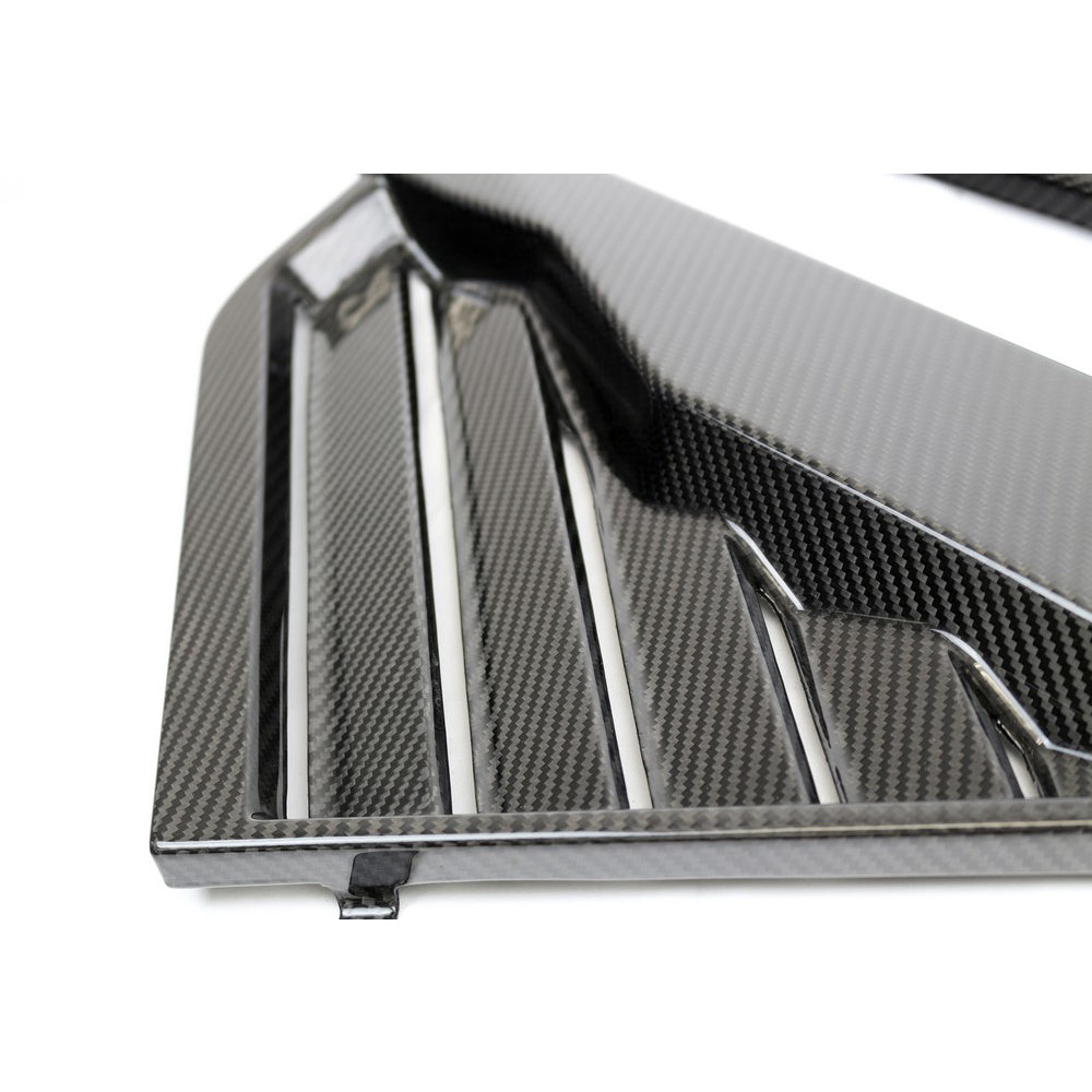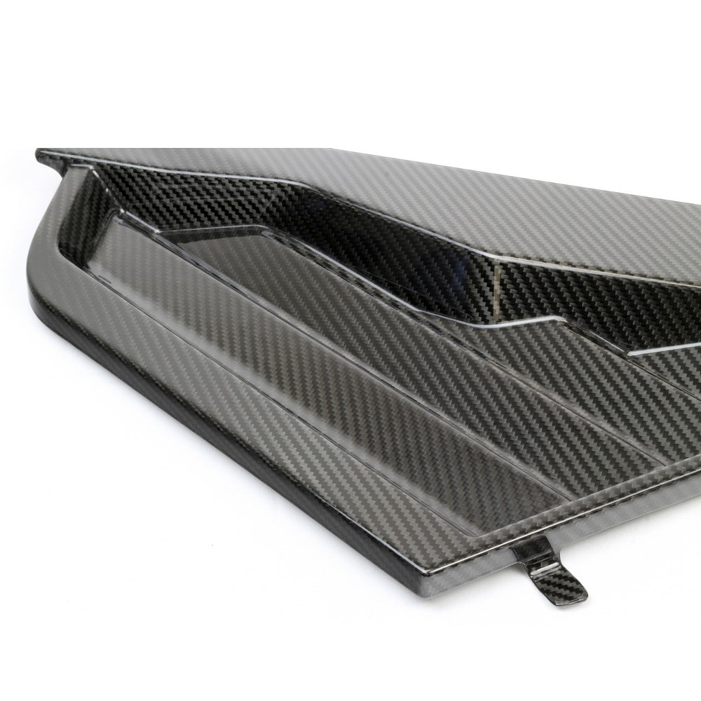 If you are looking to dress-up your engine bay, these Pre-preg carbon fiber panels will give you that complete finish look. These panels simply install right over the factory engine brace and are attached with 2 bolts. Factory fitment guarantee. Heat reflective film also incorporated to these panels for heat protection. Includes both left and right panels.
