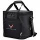 Rugged and waterproof top-loading 24 can cooler featuring thick foam insulation and leak-resistant heat-sealed liner. Features a main compartment, front zippered pocket, water-resistant zippers with easy-grip zipper pulls, a strap-secured stainless steel bottle opener, adjustable shoulder strap, and hook-and-loop padded closure on handles.Embroidered C8 crossed flags and signature on the front pocket.