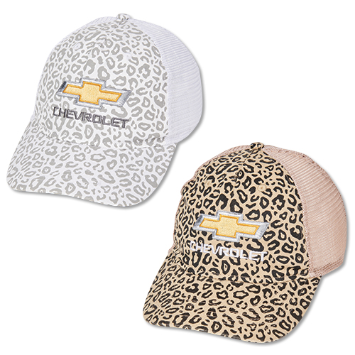 LADIES GOLD BOWTIE CHEETAH CAP Leopard print designs cover the crown and visor while soft mesh back panels and a plastic snap closure keep you comfortable.