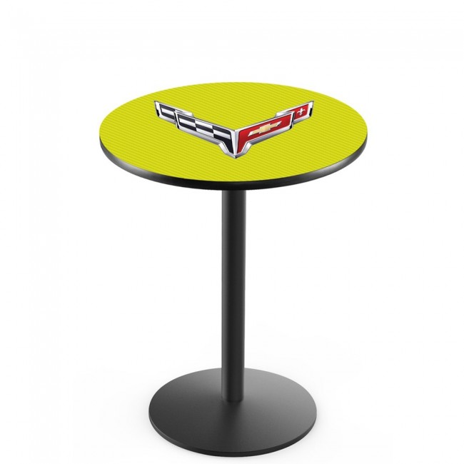 Deck out your home with this furniture set in your choice out of 23 colors! Includes 36" tall table with black wrinkle, 36" round top with car color and Corvette C8 Crossed Flag Logo. Includes set of two 25" chairs with black vinyl seat, laser-engraved back with Corvette C8 Signature logo. This item ships directly from the manufacturer. Please allow 7-10 business days for delivery. Standard Shipping Only. This item is not eligible for Free Shipping. $175 Flat Rate shipping will be added at checkout.