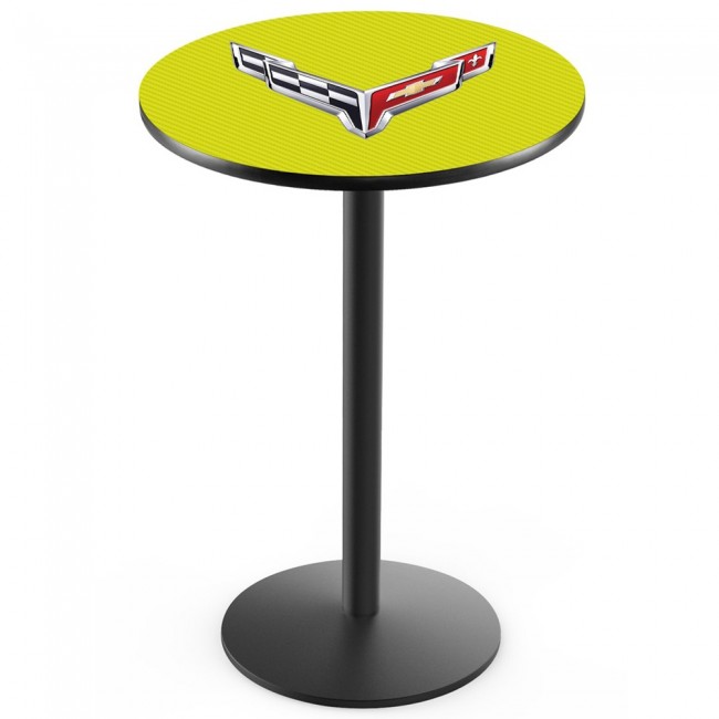 Deck out your home with this furniture set in your choice out of 23 colors! Includes 42" tall table with black wrinkle, 36" round top with car color and Corvette C8 Crossed Flag Logo. Includes set of two 30" chairs with black vinyl seat, laser-engraved back with Corvette C8 Signature logo. This item ships directly from the manufacturer. Please allow 7-10 business days for delivery. Standard Shipping Only. This item is not eligible for Free Shipping. $175 Flat Rate shipping will be added at checkout.