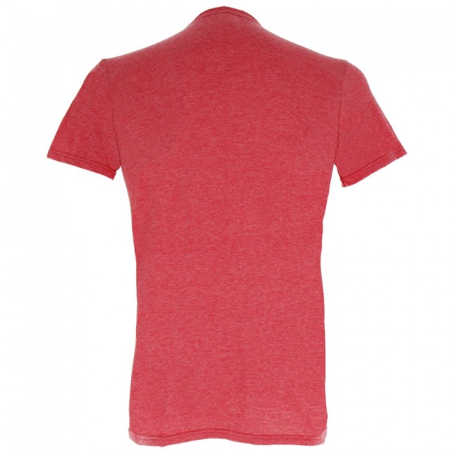Soft crew neck tee printed with "Great American Sports Car" in lightly-distressed graphics. 65% polyester/35% cotton. Heather Red. Imported |