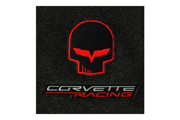 The C6 Corvette Racing Jake skull and Corvette Racing script comes embroidered on ebony Lloyd ultimat floor mats with silver or yellow logos. The DuPont nylon yarn used to manufacture all Lloyd C6 Corvette floor mats is very rugged yet great looking, providing the best of both worlds in looks and durability. The high grade yarn is sealed together with an inconspicuous nylon binding that will never unravel, so loose unwinding threads will not be a problem. Another great feature of Lloyd ultimat Corvette floor mats is the tractionback slip resistant rubber backing that along with the built in factory mount tabs will keep your new Lloyd mats from binding up under your pedals. All Lloyd Corvette floor mats come with a latex coating that provides protection from rain or snow. Each floor mat has a 5/16″ pile height and a polypropylene mesh to assure stiffness and great fit for many years. Not only do these floor mats look and perform great, but they fit great, too. Every Lloyd floor mat will cover just as much, if not more than, the factory Corvette floor mats, while maintaining the Corvette specific shape to keep an OEM look and fit. Specify Jake logo color when ordering. Fits coupe or convertible. Lloyd Premium Ultimat Corvette Floor Mats feature: - 2-ply nylon yarn