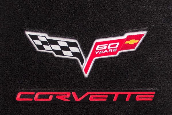 The C6 60th Anniversary Corvette emblem comes embroidered on Lloyd Ultimat floor mats. The DuPont nylon yarn used to manufacture all Lloyd C6 Corvette floor mats is very rugged yet great looking, providing the best of both worlds in looks and durability. The high grade yarn is sealed together with an inconspicuous nylon binding that will never unravel, so loose unwinding threads will not be a problem. Another great feature of Lloyd ultimat Corvette floor mats is the tractionback slip resistant rubber backing that along with the built in factory mount holes, will keep your new Lloyd mats from binding up under your pedals. All Lloyd Corvette floor mats come with a latex coating that provides protection from rain or snow. Each floor mat has a 5/16" pile height and a polypropylene mesh to assure stiffness and great fit for many years. Not only do these floor mats look and perform great, but they fit great, too. Every Lloyd floor mat will cover just as much, if not more than, the factory Corvette floor mats, while maintaining the Corvette specific shape to keep an OEM look and fit. Lloyd Premium Ultimat 60th Anniversary Corvette Floor Mats feature: - 2-ply nylon yarn