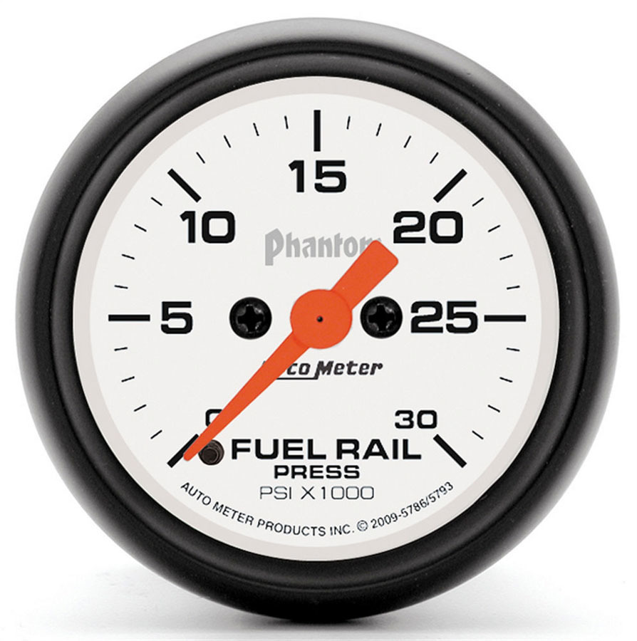 Fuel Rail Pressure Gauge, Phantom, 0-30000 psi, Electric, Analog, Full Sweep, 2-1/16" Diameter, White Face, Each
