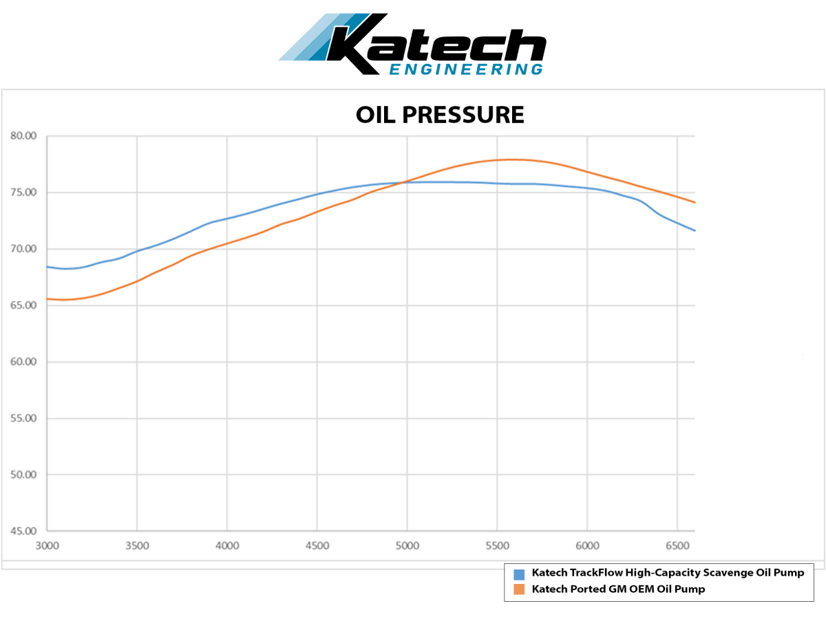 Built for high-RPM durability and precision, the Katech TrackFlow Oil Pump delivers increased scavenge capacity over both the factory pump and Katech’s Ported OEM Pump (KAT-A5069-LS7), ensuring superior oil control under extreme conditions.