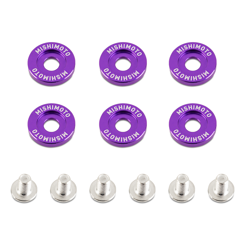 Description:  You've had your fenders off on multiple occasions, and as a result, the hardware is mismatched, corroded, and looking rough. Luckily, Mishimoto has you covered with our all-new fender washer kit. A fender washer replacement is a small, subtle upgrade that's an easy way to significantly improve the aesthetics of your engine bay. Mishimoto fender washers are constructed from CNC-machined 6061 aluminum with a durable corrosion-resistant anodized coating. Our anodized coating is available in 7 different color options, providing a perfect match for any engine bay color scheme. Looking to stylize another area of your car? This washer set is not limited to engine bay use. It's applicable in any location where M6 hardware is used, including exterior body panels or interior accents. As with all our products, this fender washer kit includes the Mishimoto Lifetime Warranty.