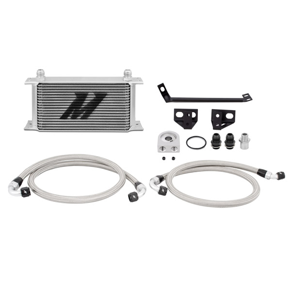 Description: For the first time in over 30 years, the iconic Ford Mustang is available with a turbocharged 4 cylinder engine producing over 300 horsepower! Turbocharged 4 cylinder engines can overheat their oil very quickly within a few laps on the track or aggressive street driving. Did you know that unlike the 5.0 liter V8, the 2.3 liter EcoBoostMustang does not come with a factory oil cooler? Aggressive tunes and some track miles can significantly overheat your oil wear down your engine. Leave it to Mishimoto to come up with an oil cooling solution to yourMustang EcoBoost! The Mishimoto engineers started with a large 19-row oil cooler and mounted it in the front of the vehicle where it receives the most airflow. Application specific braided stainless steel lines transfer the oil from the cooler to the engine and feature -10AN fittings for an easy installation. Mishimoto engineers saw consistent temperature decreases of over 40 degrees Fahrenheit using our non-thermostatic sandwich plate. Proving that this oil cooler kit can wIt'stand the stresses of the most extreme applications. This 2015-2017Mustang EcoBoost oil cooler kit is available with either a Sleek Silver or Stealth Black cooler and your choice of the MIshimoto Oil Sandwich Plate or the MIshimoto Thermostatic Oil Sandwich Plate. As with all our products, this MishimotoMustang EcoBoost Oil Cooler Kit includes the Mishimoto Lifetime Warranty.