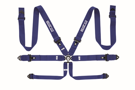 Description: Sparco™s full line of harnesses works in unity with our competition seats. Crafted from high-quality fabric and fitted with durable fasteners, each harness restrains the body for added safety and protection. Our 6-point harness features 3-inch lap and shoulder straps that attach in the center using an aircraft-quality quick-release buckle with integrated anti-submarine belts. The lightweight aluminum adjusters allow for smooth, quick adjustments and perfect clamping. Each belt attaches to the frame using snap-on fixings. Available in three colors each: black, blue and red.