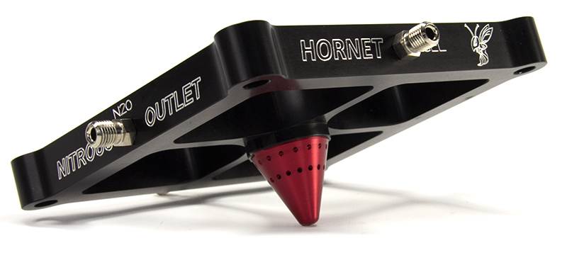 Dual Stage Hornet 2: The Hornet 2 is based on the hugely successful Stinger Nitrous Plate lineup and follows the ideology that nitrous plates are not one-size-fits-all. It is designed to saturate the incoming air flow by placing the discharge cone at the top of the intake throat while discharging the nitrous horizontally across the intake plenum in a 360 Degree pattern.