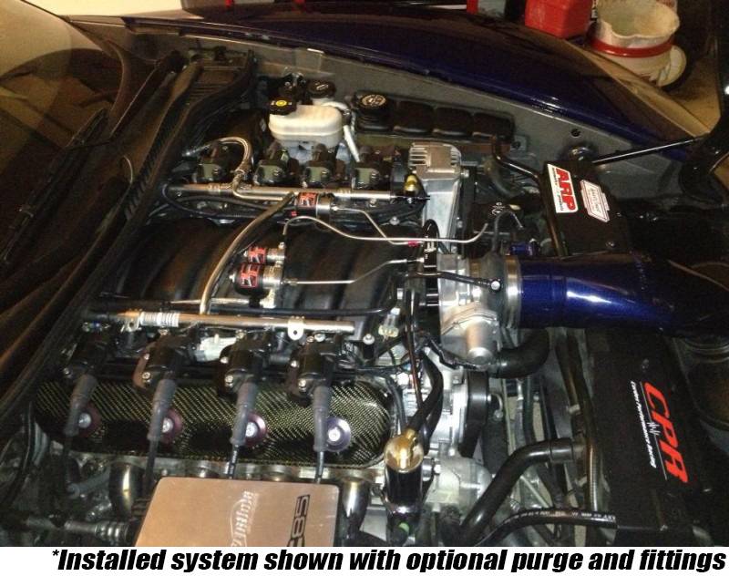 This system is designed specifically for the C6 Z06 Corvette using the stock 90mm LS7 intake manifold and features custom solenoid brackets and prefabricated hard-lines.