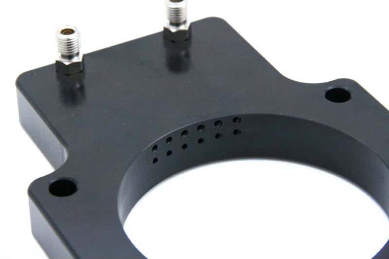 Superior Atomization. This injection plate has 6 specially designed nitrous and fuel discharge ports that completely saturate the air intake charge with the best atomized mixture possible. For higher horsepower levels proper distribution into the air stream is critical for even cylinder to cylinder distribution.