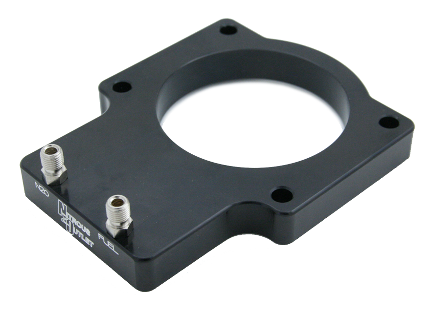 Wet Nitrous Plate. This system includes a billet aluminum plate to fit 92mm LSX intakes and is capable of flowing up to 400 HP of nitrous. Each billet plate has a black anodized finish with CNC engraved logo and fuel/nitrous labels.