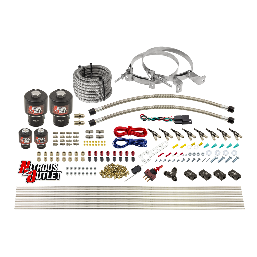 Nitrous Outlet's 8 cylinder direct port systems are designed to be high flowing for high horsepower applications. This system comes with one nozzle per cylinder capable of flowing 200 HP each.