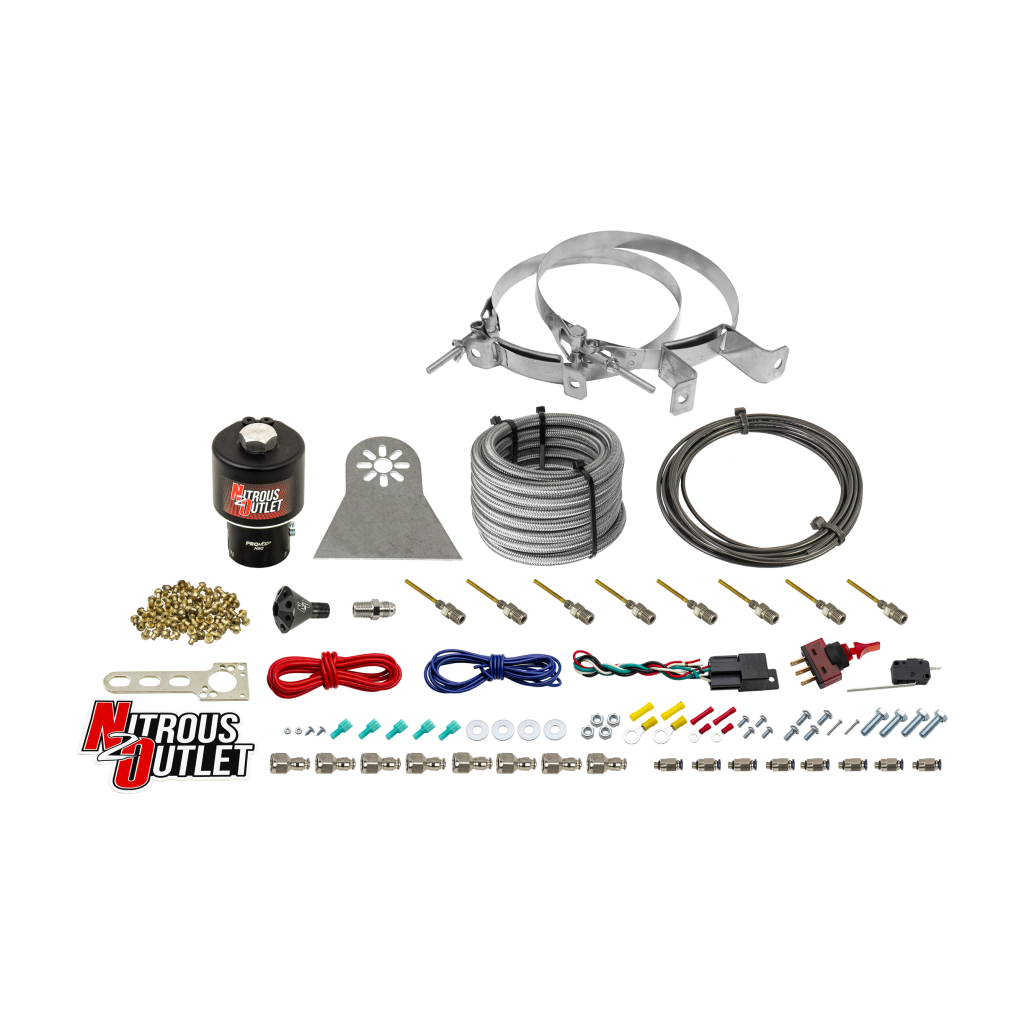 Nitrous Outlet direct port systems come complete with the highest quality parts available. Nitrous Outlet direct port systems are the best way to ensure equal distribution of nitrous in each cylinder. This system comes with everything needed for your direct port system.