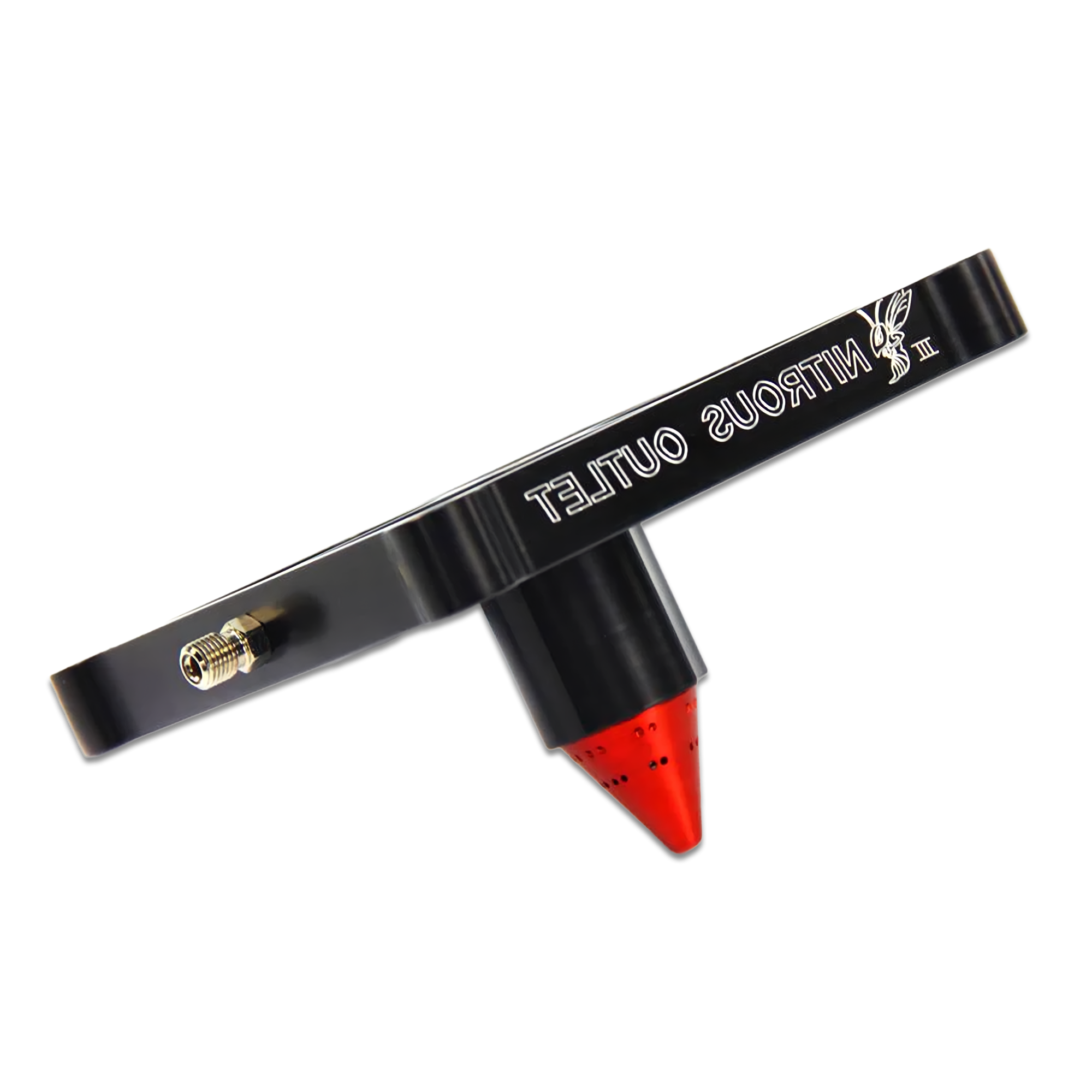 Construction: The 4500 plate and cone are manufactured from 6061 billet aluminum. The nitrous plate is .75€ thick and black anodized with engraved Nitrous Outlet logos and Fuel / N2O entry marking. The cone is anodized red and features 16 nitrous discharge holes and 16 fuel discharge holes that discharge 1-7/8" below the carb flange. This is a plate only and does not include and gaskets, jets, or hardware.