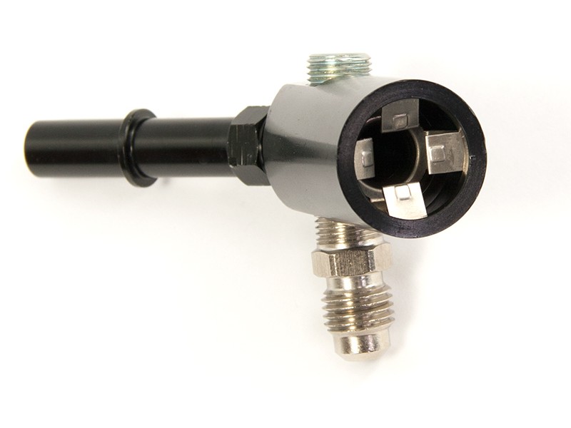 Connects Directly To Fuel Rail Push Lock Style Additional Accessory Port Machined Billet Aluminum Hardware, O-Ring, and Fittings Included Anodized Black and Laser Etched |