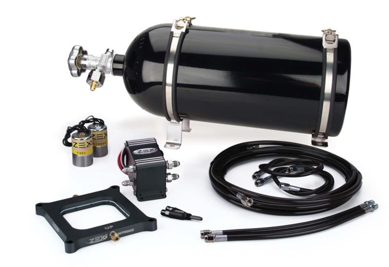 Revolutionary perimeter injection technology design provides better nitrous and fuel atomization! For years, plate systems have been just that; a plate bolted under the carburetor equipped with two crude brass spray bars to inject nitrous and fuel into the intake charge. Nitrous technology is getting ready to take a huge leap forward! The new ZEX Perimeter Plate nitrous system provides the optimum spray efficiency with nitrous and fuel outlets placed at 12 injection points around the perimeter of the intake manifold. This new system provides perfect distribution of nitrous oxide and fuel, delivering the most horsepower possible. Through an ingenious new design, nitrous is injected into and through the ZEX plate creating a highly combustible nitrous and fuel cloud in the plenum of the manifold. This even distribution avoids the irregular fuel burn problems and leakage found with spray bar systems, which results in lost power. The new ZEX Perimeter Plate nitrous system is tunable for a 100 to 300 horsepower boost and is compatible with any square flange, four-barrel carburetor application. |